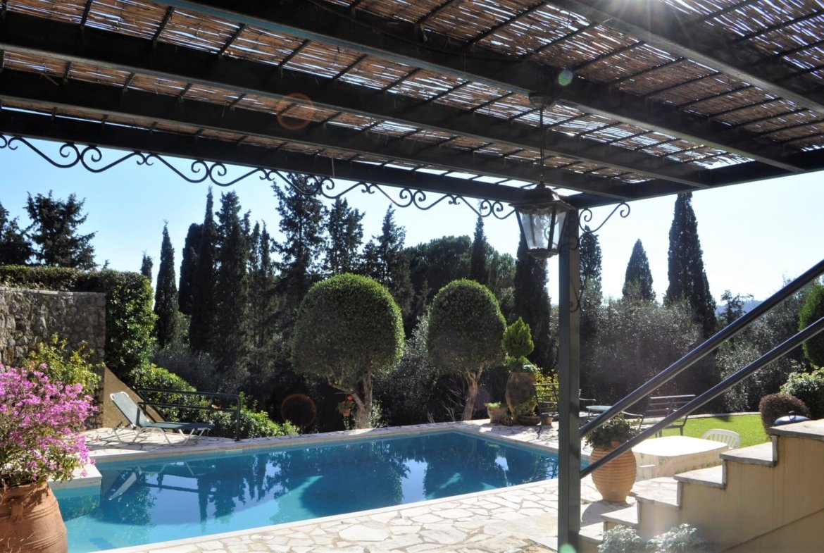 From the TV and Living rooms you can step out on to the large covered balconies and enjoy Corfu at its best with protection from the sun. Leading down from both balconies steps will take you to the pool and gardens.