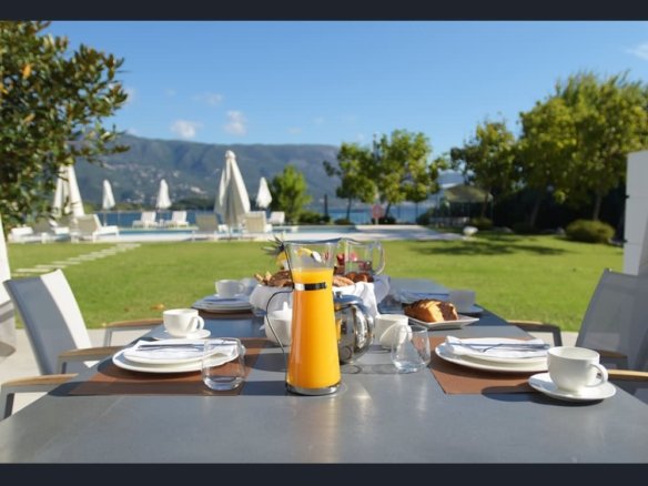 Enjoy the green garden, right next to the sea with direct access to the beach. Admire the spectacular vista of the Ionian Sea view from the spacious balconies or through the huge glass doors. Relax by the swimming pool, with comfortable poolside recliners and poolside umbrellas, or take a refreshing dip in its waters. These are just some of the options that make every day a perfect day.