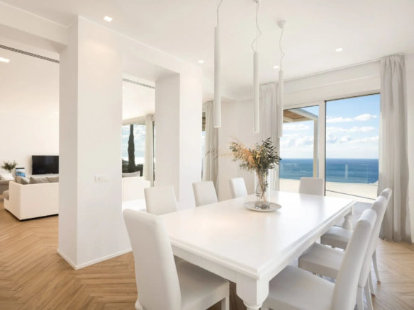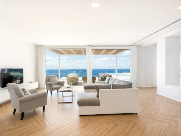 Step into your private paradise featuring a stunning 60 square meter infinity swimming pool that seamlessly blends with the panoramic sea views. Bask in the golden hues of the sunset from your spacious terrace, where every evening feels like a masterpiece painted just for you.