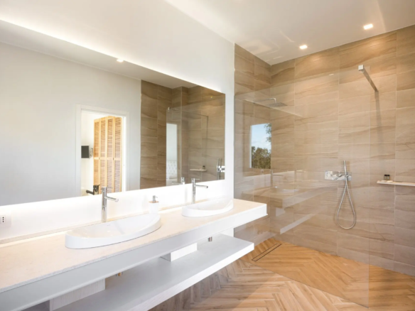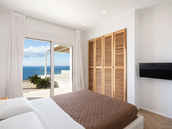 Inside, the villa offers a harmonious blend of modern sophistication and traditional Greek charm. The living spaces are bathed in natural light, creating a warm and inviting atmosphere.