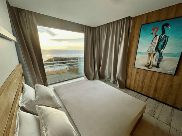 The ground floor (120 sqm) welcomes you with a spacious living room, an open-concept kitchen and dining area, and a guest toilet. Expansive sliding windows with ultra-slim 2.5 cm frames create a seamless connection between the indoor spaces and the stunning seascape.